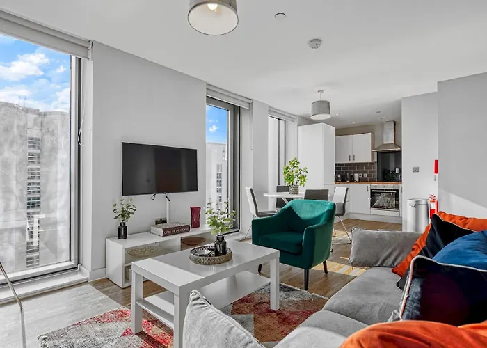 Denne leiligheten ligger i Salford distriktet i Manchester Leiligheten ligger i et bolig område i Manchester. Miami Pizza og Salford Curry King serverer et bredt utvalg av retter og det ligger en 5-minutters spasertur unna. Du kan komme deg til Manchester kunstgalleri på et par minutter med bil.
